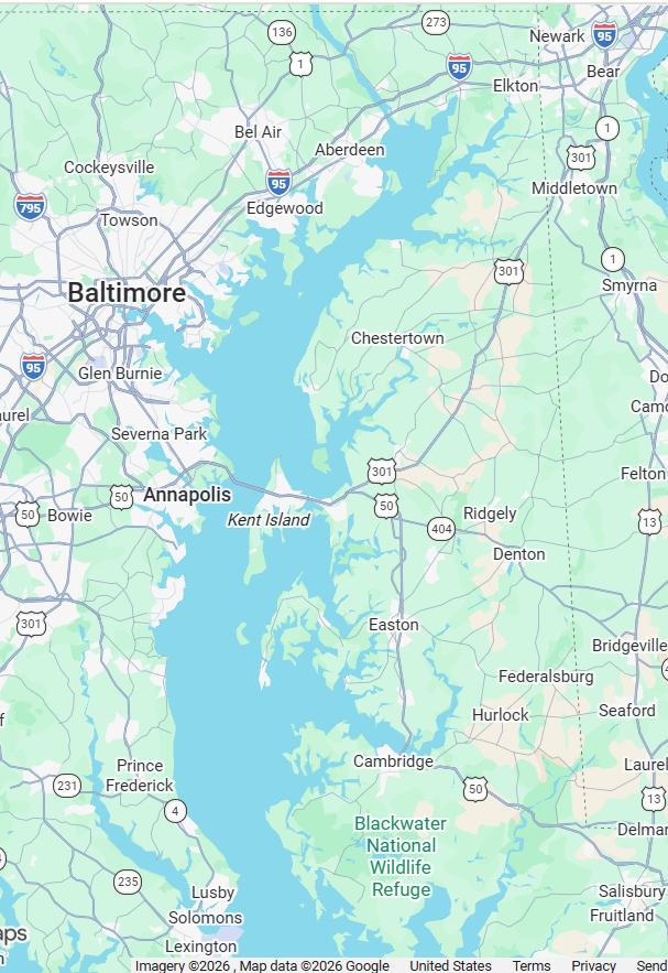 Eastern Maryland includes a wide mix of waterfront towns, small cities, and travel corridors where customers regularly move between locations like Annapolis, Kent Island, Easton, and Cambridge. People searching for services often compare businesses across these areas, not just within a single town.